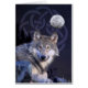 Uma cena da noite de um lobo. No fundo são uma Lua cheia e um nó celta.