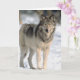 Um lobo magnífico, atravessando uma paisagem nevada.