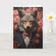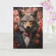 Um lobo elegante de terno com flores cor-de-rosa, dentro de vazio, em todas as ocasiões
