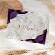 Este elegante cartão de lugar reservado para mesa de casamento moderno apresenta uma imagem de agata púrpura, aparada com brilho dourado em cantos opostos. A palavra "reservado" aparece num guião dourado com manuscrito com balsas antes e depois numa cinza e fundo de mármore branco em ambos os lados do cartão.