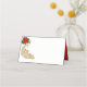 Este cartão de lugar dobrado é mostrado em vermelho e branco com uma flor vermelha de poinsettia festiva e um impressão de pavão ouro. Personalize este item ou comprar como está.