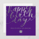 Cartão de Saudação de Aniversário Feliz de Bairro Quadrado, na moda moderno, com dois lados, esplêndidos, com letra de folha de prata falsa, texto de escrita com letra de mão num moderno fundo quic roxo contemporâneo. Esta cor pode ser alterada para qualquer outra. Note que a prata neste design é uma impressão de cor plana e não é uma folha metálica real. Combinação perfeita de elegância e luxo profissional formal de negócios com um sentimento quente. Altere a imagem "seu logotipo aqui" com seu logotipo ou remova-a se quiser usá-la sem um logotipo. Não se esqueça de personalizar o texto frontal e traseiro também.