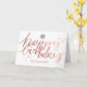 Roteiro horizontal moderno escrito à mão, quente e gentil, Business Happy Birthday - Cartão de Saudação com falso rosa dourado, com letra de fundo branco limpo. Observe que o rosa ouro neste design é um impressão de cor amarelo-rosa plano e não é uma folha real. Altere a imagem "seu logotipo aqui" com seu logotipo ou remova-a se quiser usá-la sem um logotipo. Não se esqueça de personalizar o lado frontal e o texto dentro também. A cor branca de fundo é personalizável e pode ser alterada para qualquer outra cor para corresponder ao esquema de cores da sua empresa.