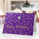 Personalize este profissional elegante moderno, mas ainda parecendo quente e gentil cartão de aniversário comercial horizontal, com faux gold confetti em um plano de fundo personalizado de cor púrpura indigo. Note-se que o ouro brilhante é um impressão de cor bege amarelo-plano e não é uma folha de ouro ou um brilho. A cor de fundo roxa pode ser alterada para qualquer outra. Altere a imagem do "seu logotipo aqui" com seu logotipo e o texto na frente e no dentro.