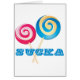Dois idiotas em azul e rosa se cruzando. O texto diz: Sucka.