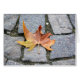 Uma folha de secagem de solteiro, da árvore de avião de Londres contra uma rua de pedra dura cortada à mão. Fotografia de Minerva Bloom.