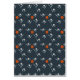 Padrão sem costura de margaridas e círculos laranja em fundo escuro.