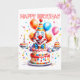 Este cartão de saudação apresenta um palhaço alegre festivo numa festa de aniversário. Sinta-se à vontade para personalizar este cartão com seu texto para torná-lo exclusivo e do tipo.