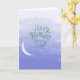 Cartão clássico de aniversário com nuvens e estrelas do céu em desvanecimento e lua em crescente. Dentro saudação - Que todos os seus desejos de aniversário sejam concedidos! A saudação pode ser editada.