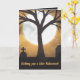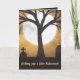 Este cartão caracteriza uma silhueta de uma árvore e de um cemitério na frente de uma Lua cheia na parte dianteira. O texto pode ser personalizado na parte dianteira & no interior do cartão. Este cartão do assombro seria perfeito para seus amigos & família para o Dia das Bruxas!