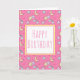 Cartão Lua, Estrelas e Nuvens Padrão no Aniversário Rosa