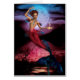 Esta é uma sirene dirigida vermelha lindo do mar na frente de uma lua mystical.