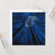 Esta design apresenta uma bela imagem de uma lua de cheio atrás de árvores altas. O céu é azul escuro.