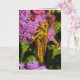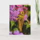 O gafanhoto é um símbolo de boa sorte em todo o mundo. Este cartão de aniversário de fotografia de arte apresenta um gafanhoto amarelo e marrom subindo uma flor de fio-máquina rosa, vermelha e magenta ageratum. Ele está olhando sobre o ombro do fotógrafo com seu enorme olho-de-ouro e preto. Uma bela folhagem verde enquadra a fotografia. Talvez este cartão seja um amuleto de sorte! O texto pode ser personalizado para se adequar à sua ocasião especial ou removido inteiramente.