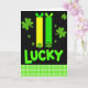 This St. Patrick's Day card features a high-contrast illustration set against a deep black background, where lucky symbols float like confetti around the main design ☘️. Near the top, two tall, stylized pillars stand side by side—one sunny yellow and the other lime green—each topped with a small bow, like matching gifts meant for two close friends. A light scatter of shamrocks and tiny star-shaped clovers drifts around them, creating the feeling of shared glances and inside jokes in the middle of a celebration 💚. Centered below, the word “LUCKY” appears in large, rounded 3D bubble letters, glowing in bright green with shiny highlights. The text sits prominently in the middle area, with its green color echoing the clovers above and drawing the eye downward. At the bottom quarter of the design, a green-and-white gingham pattern forms a neat base, like a picnic cloth under the floating shapes. The final look includes the black field, the yellow-and-lime pair with bows, the green “LUCKY” lettering, and the crisp gingham strip along the lower edge.