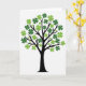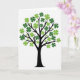 This card shows a stylized tree centered on a bright white background, with a sturdy black trunk that narrows as it rises. Slender, angular branches spread outward into a balanced canopy that gently suggests a heart shape, giving the scene a quiet, affectionate tone like a close friendship held steady. Instead of regular leaves, every twig is tipped with four-leaf clovers ☘️, and their mixed sizes make the canopy feel lively and growing. The clovers alternate between fresh lime green and deep emerald 💚, creating a soft contrast that looks like light shifting across the crown. Any text would sit neatly above the canopy in a matching green, with a smaller line placed below the trunk in dark gray to echo the branches. The strong black lines keep everything grounded while the greens keep the top airy and light. The overall image stays simple and graphic: an inky trunk, a heart-like spread of branches, and a clustered canopy of two-tone clovers against pure white.