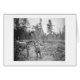 Uma fotografia clássica do documentário do Alasca de Frank G. Carpenter. Este cartão comemorativo apresenta uma Vista de dois homens serrando um tronco na selva do Alasca, tirada em 1916.