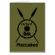 Uma representação "subjugada" militar negra do escudo de um Macabcabee e de duas lanças. O escudo é enfeitado por um leão e o texto lendo "Yisrael" (Israel) no alfabeto paleohebraico. O texto "Maccabee" também é exibido. Os Macabeus eram rebeldes judeus que libertaram Judeia do jugo do Império Seleúcio. Chanukkah não é apenas um festival de inverno-médio com velas e iguarias fritas, ela celebra uma vitória militar, e garante a liberdade religiosa, sobre o Império Seleúcio. Além disso, a revolta foi uma guerra civil envolvendo aqueles judeus que eram leais ao G-d e aqueles que tinham adotado o Hellenismo dos Seleucids.