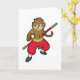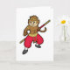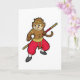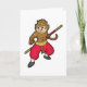 Cartão Macaco como Guerreiro com Cajado e Tira no Cabeça