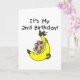 Um macaco-menina de uma banana amarela grande em T-shirts de segundo aniversário, fatos-chave, cartas, autocolantes, ímanes, sacos de tote e muito mais.