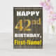 Cartão Madeira Faux, Faux Dourada 42º Aniversário + Nome