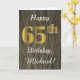 Cartão Madeira Faux, Faux Dourado 65.o aniversário + nome