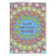 Um cartão de aniversário para a mãe. O cartão de aniversário perfeito para um entusiasta de crochê ou tricô. Círculos de lindas flores de crochê para mostrar o artesanato. Dê este cartão de boas-vindas de aniversário feliz a alguém que ama fazer crochê.
