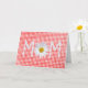 Aniversário para mãe com texto margarida em pétalas de flores sobre fundo de gingham vermelho e branco com efeito desvanecido