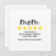 Cartão de aniversário simples ou cartão de Dia de as mães com 5 estrelas amarelas e a frase engraçada "Mãe - 5 estrelas. Alcance superior! Excepcionalmente paciente. Excelente DNA. Teria como mãe de novo." Um cartão humorístico e doce para sua mãe no Dia de as mães, aniversário de mãe, ou para qualquer dia do ano que você quiser mostrar amor e apreciação.