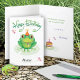 Faça sua atitude anfíbia com esta sapo numa almofada de lírio olhando para uma fatia de bolo de aniversário na frente dele. Mande isso para sua mãe que ama sapos e os deseja diversão!