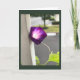 This blank-inside greeting card features a brilliant magenta and purple morning glory with leaves of chartreuse, twining delicately against a railing and lit from within like a single firework of color. Send some glorious color and light to anyone you’re thinking of!