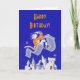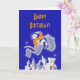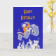 A design vem de uma poster teatral vintage com um homem cavalgando um tapete mágico sobre castelos. O design gráfico foi do artista Richard Halls, criado em 1936 ou 1937 e patrocinado pelo Projeto Teatro Federal (Nova York, N.Y.). Esta poster foi criada para uma apresentação do "A Hero is Nascer" de Andrew Lang no Teatro Adelphi, 54th Street a leste da Avenida 7 em Nova Iorque. Neste cartão de boas-vindas, apenas o design é usado para criar uma saudação de Feliz Aniversário. Você pode mudar a redação deste cartão.