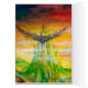 Pintura acrílica colorida e vibrante em verde, amarelo alaranjado, roxo, castanho vermelho, cores brancas de 2009, Duelo entre Bradamant e Negromcer em seu grifão com asas enormes. Orlando Furioso, Canto 2 escrito pelo poeta Renascentista italiano Ludovico Ariosto 1516 .