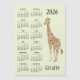 Cartão Magnético Calendário Design Girafa 2026 com cor de fundo e texto personalizáveis.