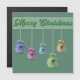 Por que comprar uma placa quando você também pode comprar uma decoração simultaneamente? Um cartão de Natal magnético e decoração irão certamente encantá-la na sua vida. Um cartão magnético pode ser colocado no frigorífico para fácil visualização e utilizado repetidamente como decoração. Cinco bolas de Natal com arcos pendurados num cartaz 3D de Natal Feliz.