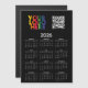 Um cartão magnético de calendário 2026, simples e na moda, que pode ser personalizado com o seu próprio logotipo e código QR. Personalize este moderno ímã de calendário corporativo e distribua-o aos funcionários e clientes do seu escritório que desejam um feliz ano novo 2026.