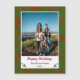 Com uma design elegante e elegante e cores verdes e vermelhas tradicionais, esta carta enquadra a foto da sua família e a mensagem de feriado pessoal lindamente.