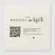Menos incômodo quando você convida seus hóspedes on-line com um código QR que os envia diretamente para o seu site de casamento para obter detalhes adicionais. A design apresenta um criativo minimalista, de cor creme de marfim, com uma moderna e elegante escrita de caligrafia. Substitua facilmente por seu próprio código QR e suas informações pessoais escolhidas. Existem geradores de código QR on-line, se necessário. Basta colocar as palavras-chave "Criador de código QR" na pesquisa do Google e muitas opções gratuitas aparecerão para você escolher.