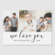 Ímanes de placa de Dia de os pais impressa personalizados com barato, personalizados com fotos e texto. Este moderno design minimalista apresenta uma colagem de fotos com 3 fotos e texto de chic que diz "We Love You - Happy Dia de os pais Dada" ou você pode personalizá-la com sua própria mensagem especial. Use as ferramentas de design para alterar a cor do plano de fundo, adicionar mais fotos, editar o texto e personalizar as fontes e cores para criar suas próprias placas de saudação de Dia de os pais exclusivas para pai e avô.