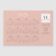 Cartão de calendário magnético Trendy e Chic 2025. Este modelo de cartão de negócios apresenta o nome da sua empresa e o logotipo quadrado e contatos opcionais e detalhes das mídias sociais. O texto vem em letras escuras e escuras claras, contra um fundo leve de salmão de pêssego.