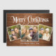 Foguete de Natal Rustic Brown Wood 3 saudando cartão magnético.