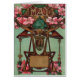 Mês de maio. Gêmeos do sinal do zodíaco. Trabalhos de arte bonitos da astrologia de Nouveau da arte do vintage, com a influência do art deco, publicada como um cartão em 1911. Muito colorido com flor do nascimento, pedra esmeralda do nascimento, cores cor-de-rosa e verdes brilhantes e letras de bloco.
