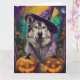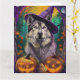 Cartão Malamute do Alasca Halloween Bruxa e Abóbora