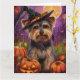 Cartão Malandro Biewer Terrier Halloween Witch E Pumpkin