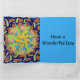 Este fantástico cartão de aniversário colorido apresenta a minha pintura de um círculo de lagartos coloridos num design de mandala, bebendo de um bebedouro no deserto, contra um design abstrato. Um cartão ideal para um amante de lagartos e ideal para combinar com um presente correspondente.