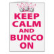 Fique calmo e Bunco no Design. Design gráfico divertido que será um sucesso no seu próximo evento Bunco. Compre um como prêmio ou presente. Possui uma coroa e três dados. Você pode alterar a cor do plano de fundo na maioria dos itens.
