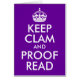 Cartão Mantenha o Clam e a Prova Lida