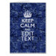 Sua personalização fica tranquila dizendo em um decor de camuflagem digital azul-marinho. Um estilo "Manter Calmo" personalizado dizendo em um presente gentil. Humorístico ou caprichoso experimente suas palavras criativas em duas linhas editáveis de texto. Lembre-se de usar letras CAPITAL para obter melhores resultados. Use o link "Perguntar a este Designer" para entrar em contato conosco com suas solicitações especiais de design ou para obter assistência com suas necessidades de personalização.