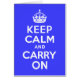 Mantenha-se calmo e continue no estilo vintage design num fundo azul arco-íris.