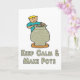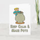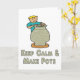 O design da Potência Maneira Calma Divertida mostra um potente ao volante criando um pote de argila com as palavras "Manter Calmo e Fazer Potes" embaixo.